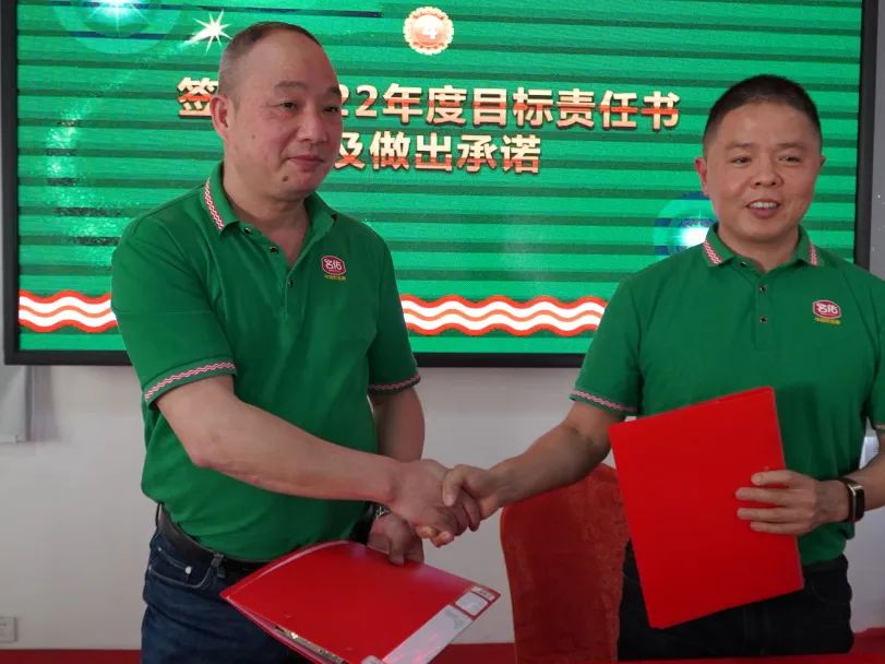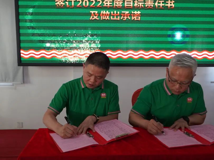 名佑面臨重重困難,完成不斷成功跨越、成功克服、成功前行,其背后離不開名佑中流砥柱的高層團隊,至此各高層領導團隊自信高昂的邁上舞臺中央簽署簽訂2022年度目標經營責任書和2022年度安全目標責任書,同時總裁帶領常務副總裁、副總裁及各中心總監(jiān)進行宣誓。