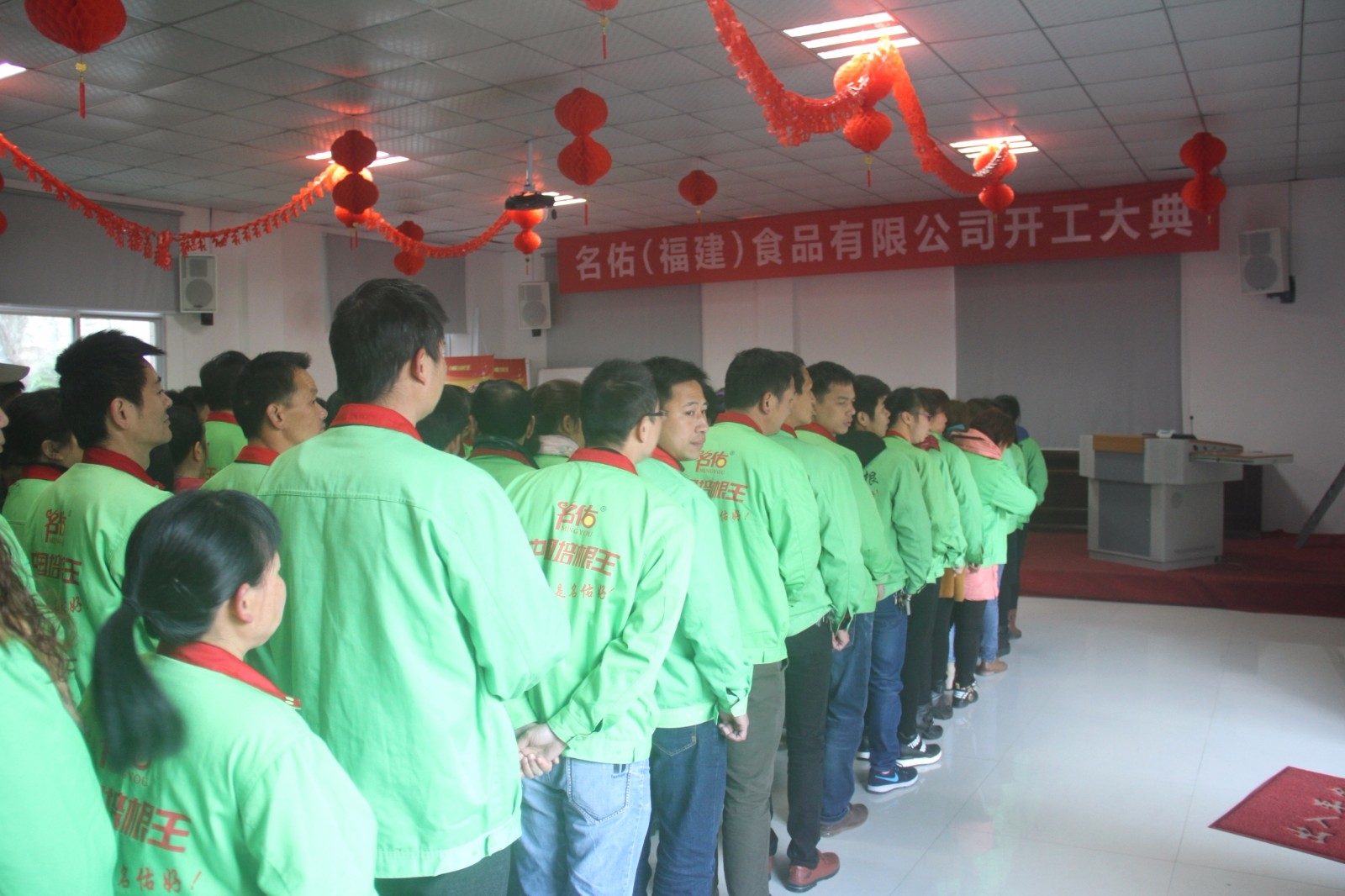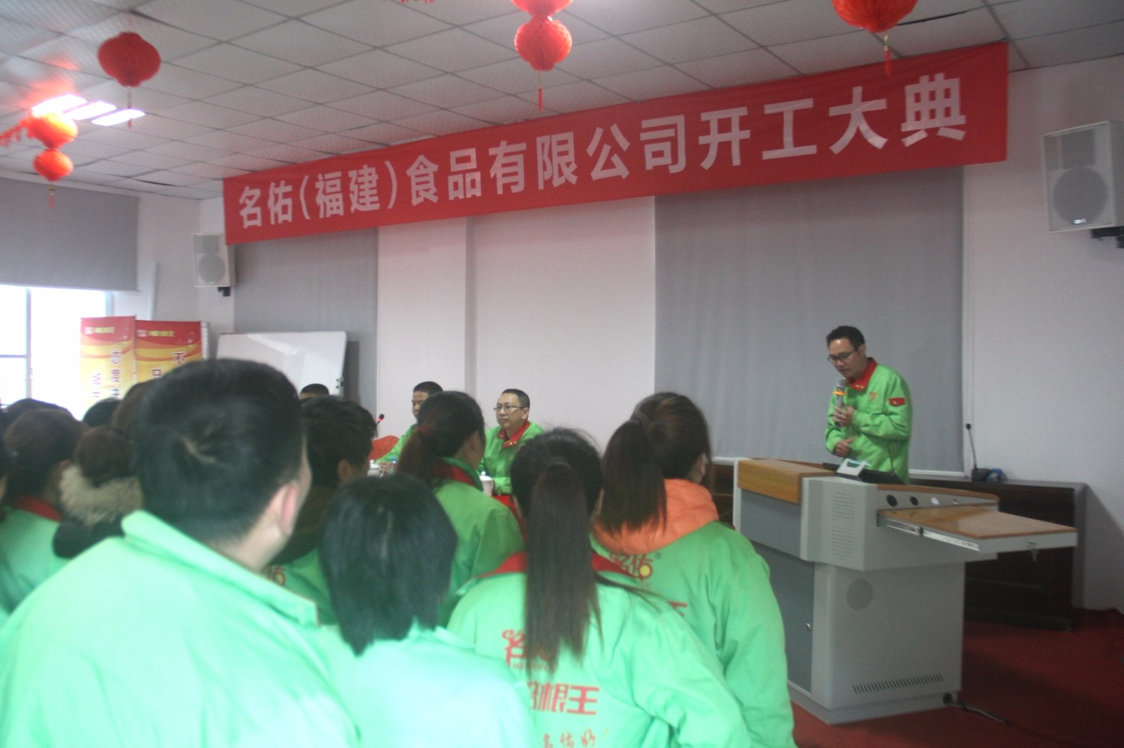 開工大典開始,名佑(福建)食品有限公司各領(lǐng)導(dǎo)人發(fā)表重要講話。回首過去一年名佑全體家人為公司所帶來的貢獻(xiàn)和支持,展望新的一年中公司將要發(fā)展的方向和目標(biāo),攜手同進(jìn),共創(chuàng)名佑美好明天。