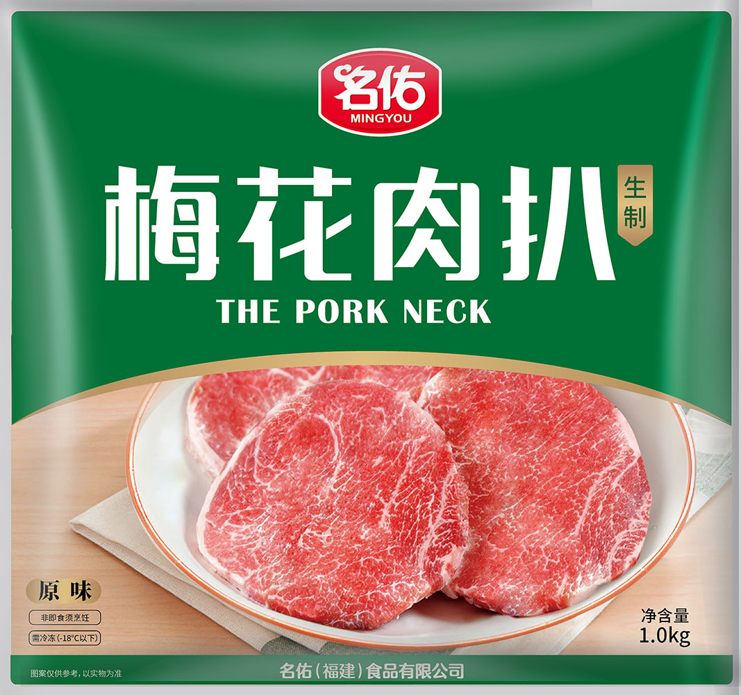 產品名稱:名佑梅花肉扒 產品規(guī)格:1.0kg╳12包